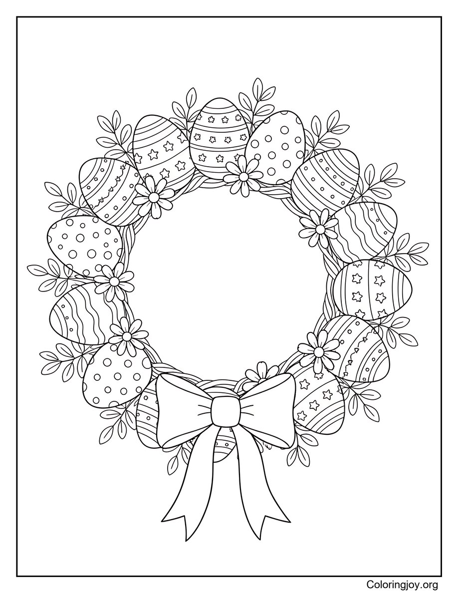 Easter Egg Wreath Coloring Page