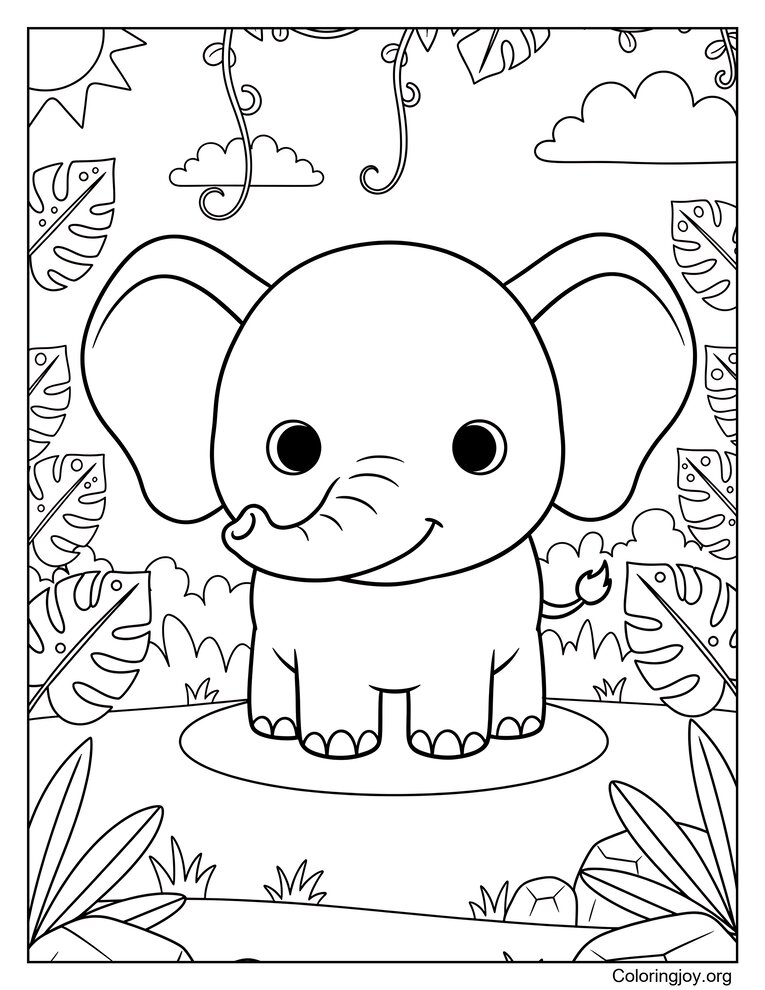 This Elephant Spraying Water 2 coloring page is available as a JPG file (73 KB) and a high-quality PDF version (299 KB). Download and print it for free, or explore more Elephant coloring pages in the same category.