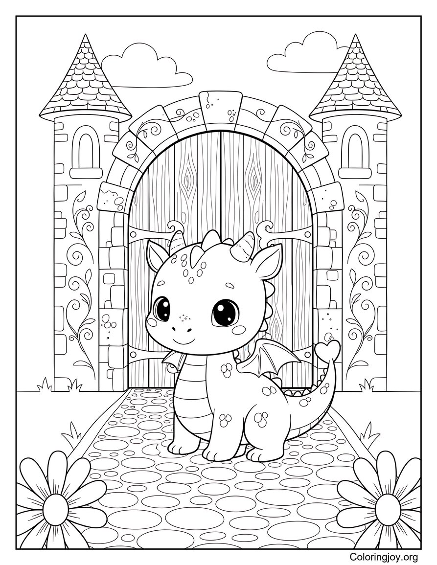 This Guardian Dragon Standing At Castle Gate coloring page is available as a JPG file (131 KB) and a high-quality PDF version (649 KB). Download and print it for free, or explore more Dragon coloring pages in the same category.