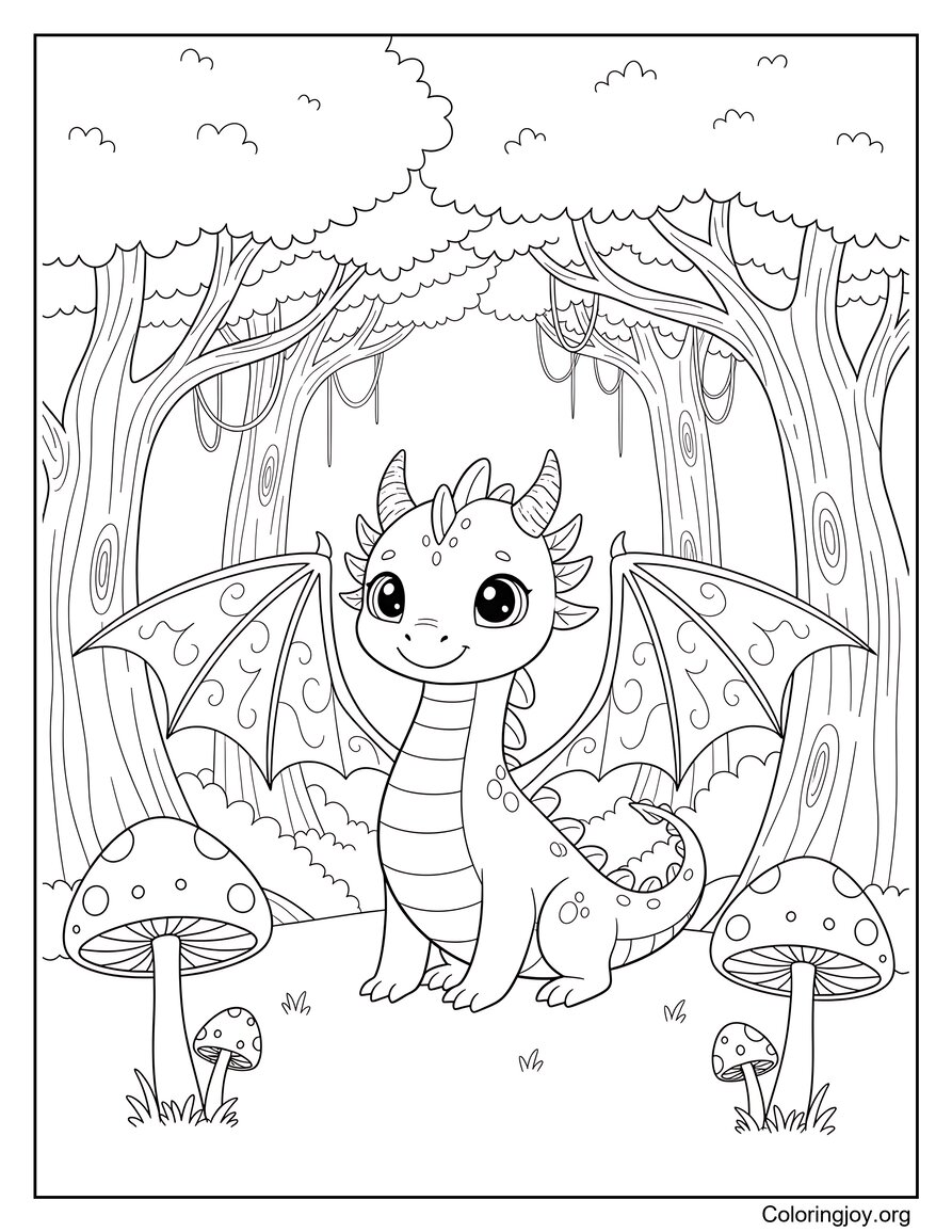 This Realistic Forest Dragon With Large Wings coloring page is available as a JPG file (121 KB) and a high-quality PDF version (586 KB). Download and print it for free, or explore more Dragon coloring pages in the same category.