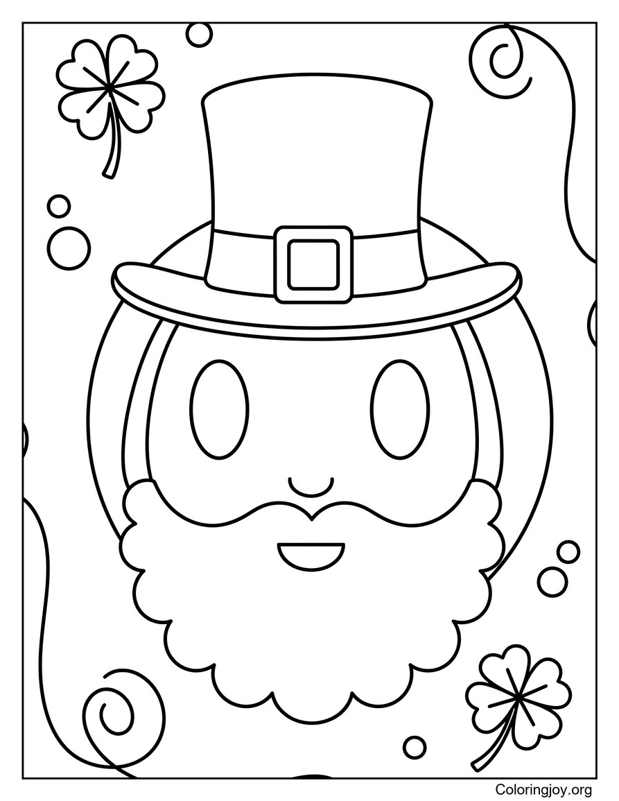This leprechaun face has a fluffy beard and cute hat for easy coloring enjoyment.