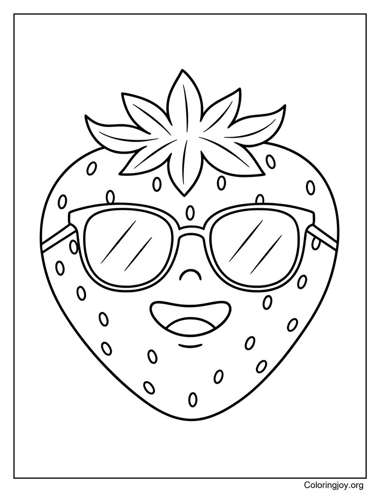 This Strawberry Wearing Sunglasses 2 coloring page is available as a JPG file (39 KB) and a high-quality PDF version (290 KB). Download and print it for free, or explore more Strawberry coloring pages in the same category.