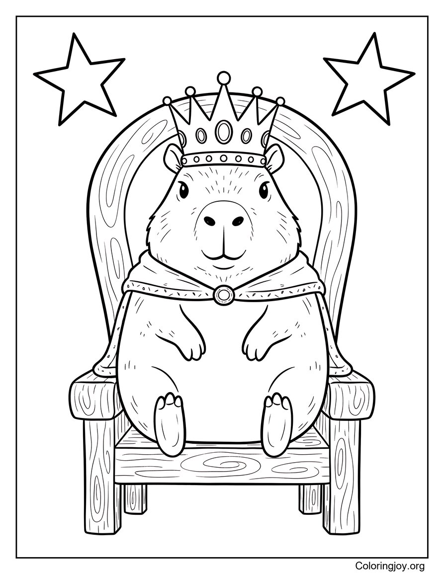 This The Royal Capybara King coloring page is available as a JPG file (77 KB) and a high-quality PDF version (423 KB). Download and print it for free, or explore more Capybara coloring pages in the same category.